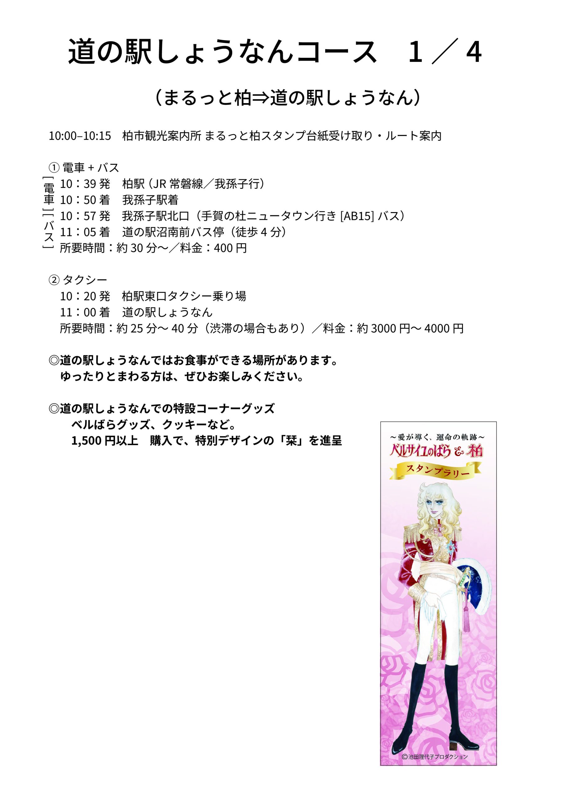 ベルサイユのばらスタンプラリー《スリル満点 弾丸1日行程表》掲載!「まず、道の駅しょうなんへ行くコース」